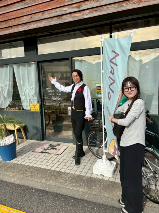 オーナーさんと一緒にパチリ。笑顔が絶えないこの空間。異国の香りと、二宮のあたたかさが溶け合うNaNa Cafe。